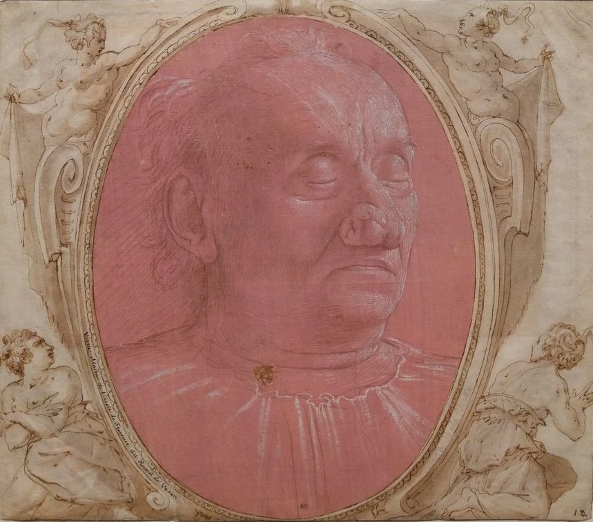 画家以写实主义手法描写患病的祖父,画中的老人已出现非常特殊的病理征兆,相关研究表明,从他的鼻头来看,应该患上了红斑痤疮——俗称酒糟鼻,一种皮肤失调的病症。这也是文艺复兴时期油画中,极少将委托人的缺陷如实描绘的少有作品之一。