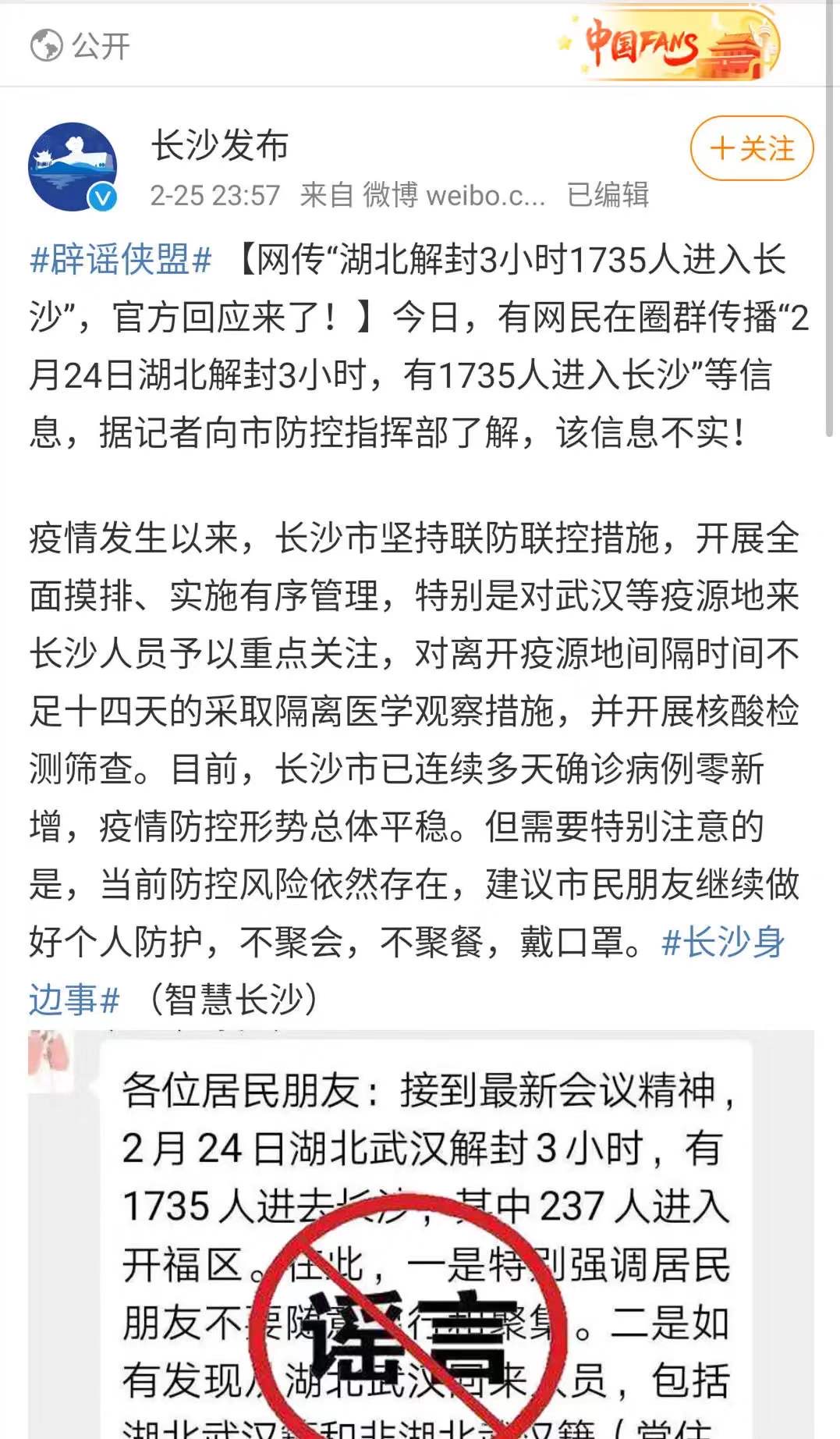 @长沙发布 辟谣微博