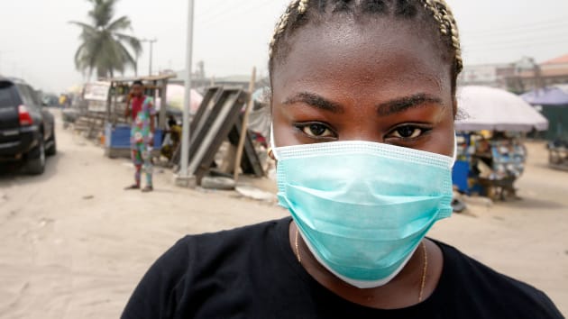 2月28日,尼日利亚,当地居民在街上戴着防护口罩