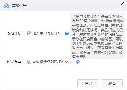 百度网盘的叫“用户激励计划”,根据官方介绍,这是为提升传输体验推广的分享活动。用户加入该计划后,可分享用户的少量闲置网络带宽以及电脑存储空间,为网盘传输速度贡献了一份力量,同时用户会得到相应的积分奖励,积分可以兑换爱奇艺VIP月卡,极速下载券奖品等。