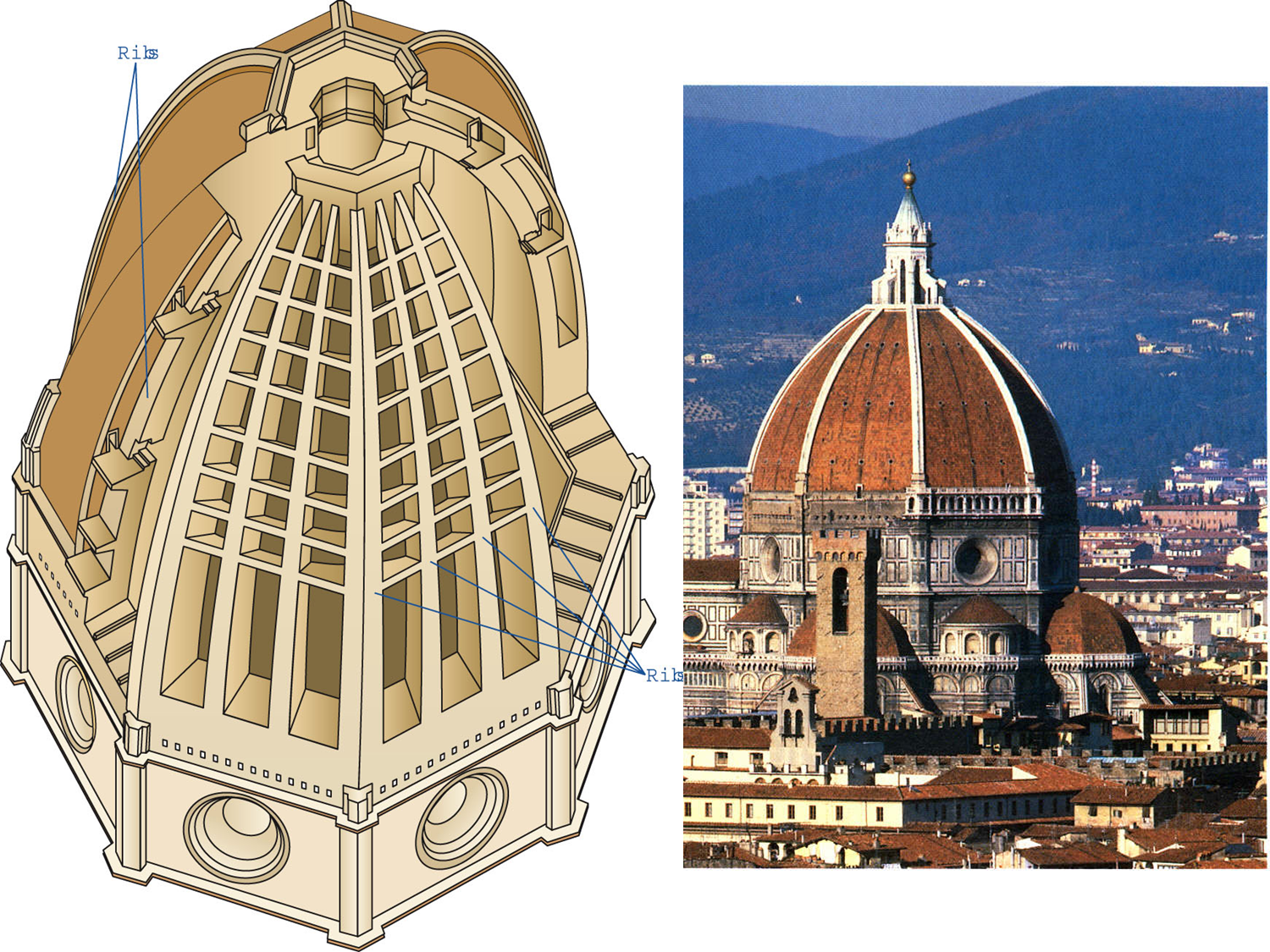 布鲁内莱斯基设计的教堂圆顶(佛罗伦萨圣母百花大教堂穹顶)