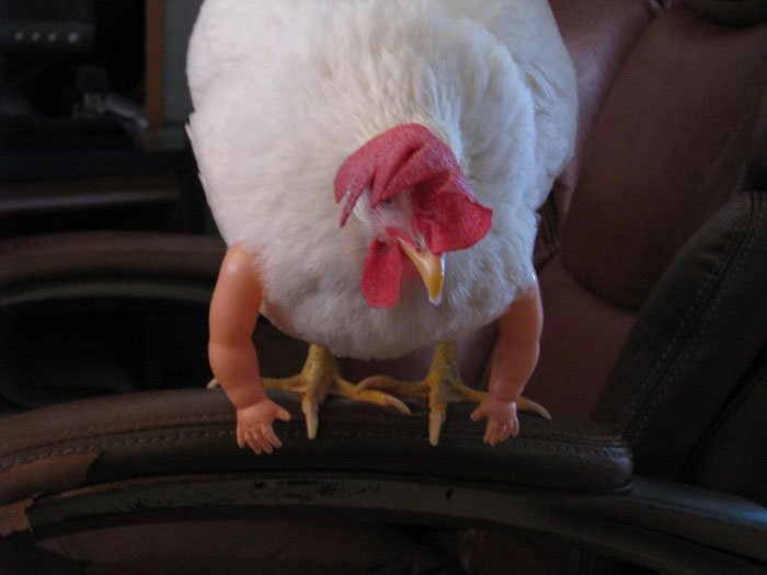 一只名叫火花的农场家鸡(Sparkle the Chicken)收到粉丝寄来的新礼物之后,与两脚兽的相似度又高了一些。礼物是一对塑料娃娃的手臂,浑圆白净,和火花的白羽毛还挺搭。挂上手臂的火花秒变健身房里的肌肉男,壮硕里带着一丝精致。