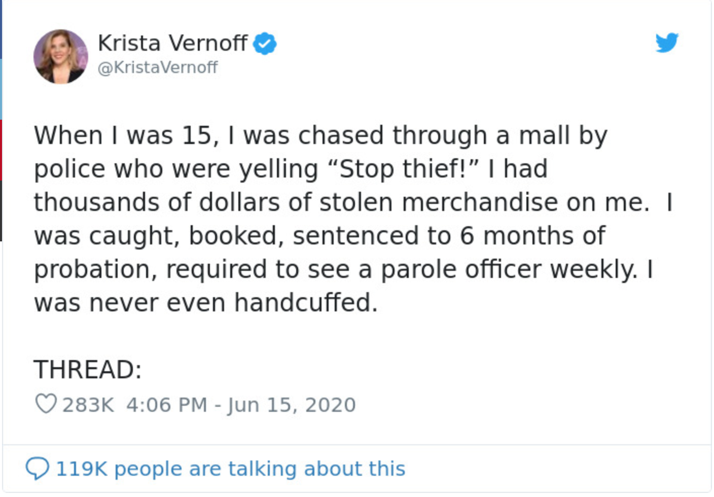 这不是教堂的告解室,当事人克里斯塔·弗诺夫(Krista Vernoff)也并不想忏悔。这个小有名气的电视编剧、节目管理人、执行制片人和导演说到这些,是为了提及一个公开的秘密,白人特权。这是她在黑人芮夏德·布鲁克斯(Rayshard Brooks)遭到警方枪击之后感受到的——这个醉酒的非裔男人在自己的车里睡着,受到警方的注意,随后在与警方的争斗里被枪杀。