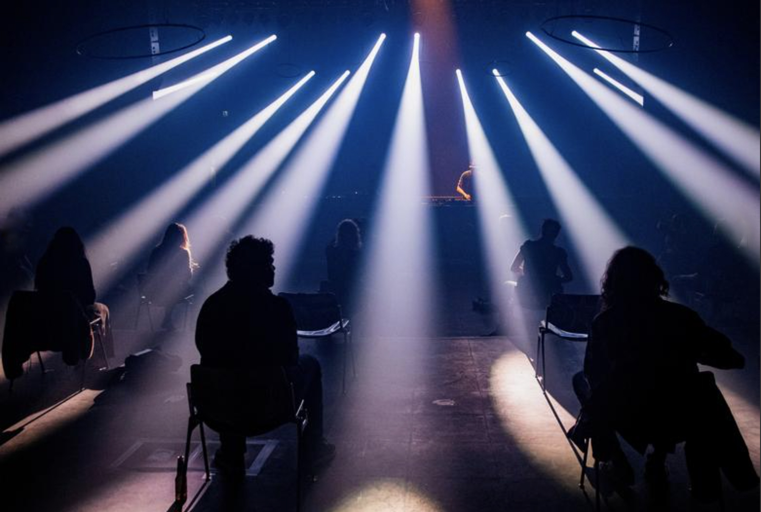 6月7日,在泰国曼谷的一间录音室里,艺术家们在屏幕前通过变焦应用进行表演。图源:Athit Perawongmetha