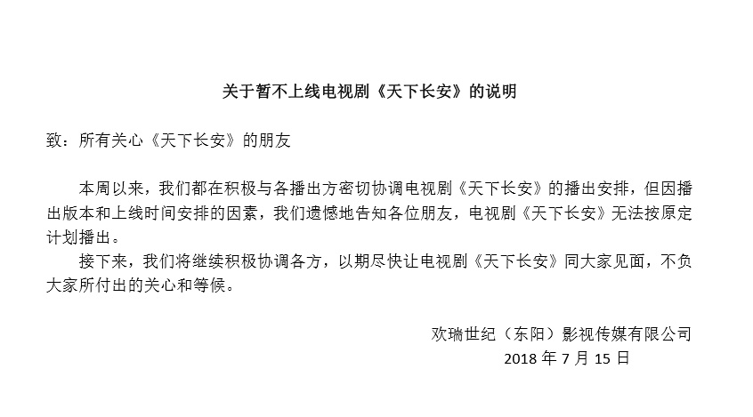 但此时话语权明显还是掌握在电视台手中。原定于2018年7月15在央视播出的《天下长安》,排播方式为优爱腾VIP用户比电视台用户多看两集,后遭到紧急撤档。剧方给出的理由是“播出版本和上线安排因素”,疑似是因为“先网后台”抢播央视,遭撤档。