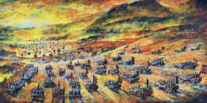 周宣王亲征南方时,先是不敌条戎、奔戎,兵败中条山(今山西绛县)。三年后,周宣王再次出征,又不敌申戎与犬戎的联军,兵败千亩(今山西介休)。千亩之战中,周宣王还差点被砍杀,幸得大臣奄父的掩护,才顺利逃回镐京。