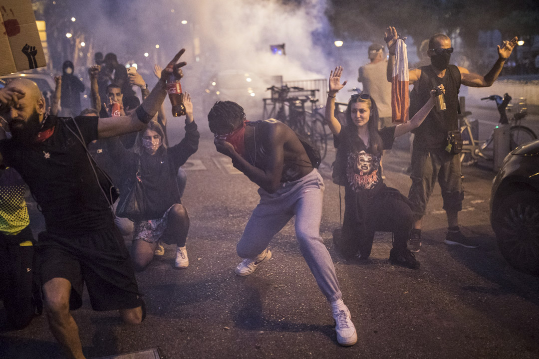 本已平静许多的波特兰,自从联邦部队7月4日进驻后,每晚都会上演猛烈的城市战争。联邦武力扔掷闪光弹、烟雾弹和催泪弹,挥舞着警棍向市民的身体上砸去,对手无寸铁的抗议者眼睛喷洒胡椒水,还将示威者押到不明身份的车里带走。