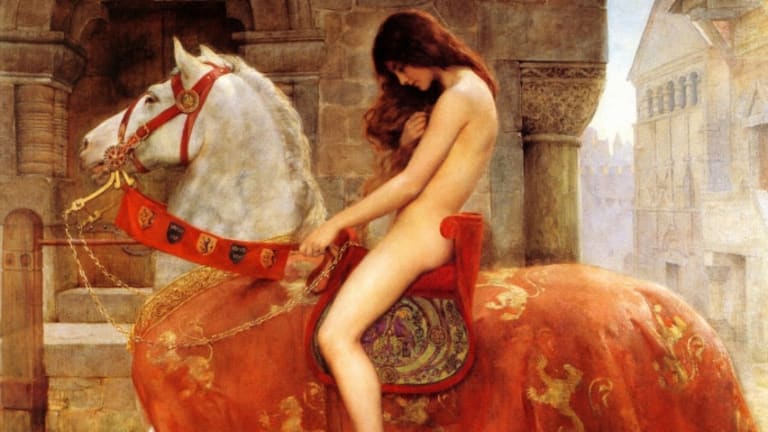 提到裸体反抗,很多人认为最早的实践者是十一世纪的那个著名的英国贵妇,为了争取减免丈夫强加于市民的重税,裸体在大街骑马的戈黛娃夫人(Lady Godiva)。