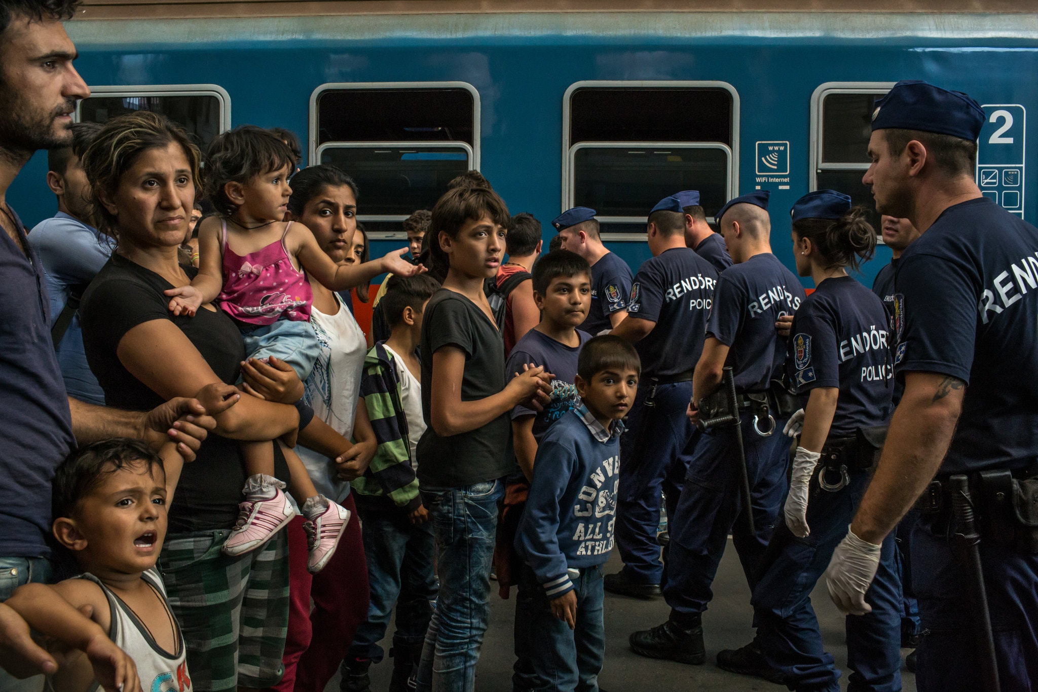 2015年,一个难民家庭在布达佩斯的Keleti火车站等着登上前往德国的火车
