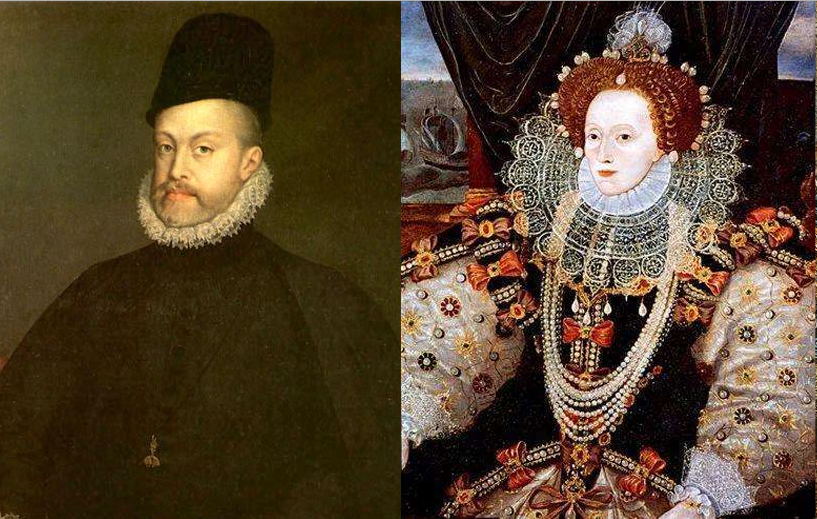 西班牙腓力二世(左)英国伊丽莎白一世(右)