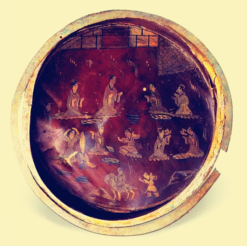 贵族生活图漆盘可以说是三国时期漆盘的代表作品。随着陶瓷技术的逐渐提升,漆器作为实用器的地位开始下降,渐渐地,使用精工巧作的漆器成为了身份象征。而这件贵族漆盘,正好显示了当时漆器工艺的高度水平。
