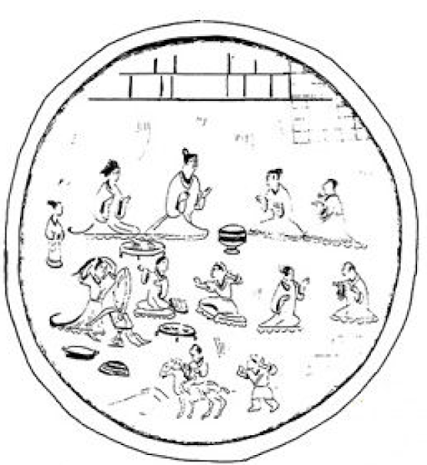 在东吴大都督朱然墓中,出土了一件贵族生活图漆盘。三国时代上乘两汉,下启六朝,因为长年兵荒马乱,有许多历史缺失。这件三国末期的漆盘,就显得弥足珍贵。