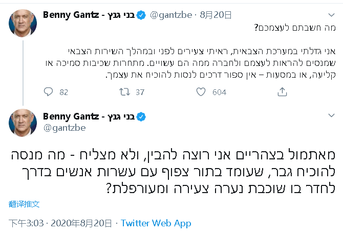 以色列国防部长曾连发几条推特,以表达自己的愤怒