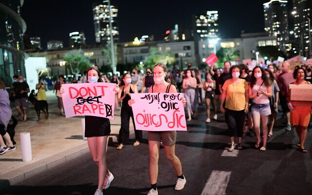 在特拉维夫,抗议者封锁了广场周围的道路,并高呼:“不,并不意味着没有,难道你们还不明白哪一部分吗?“”这是政策造成的错误。”“够了,谴责强奸犯吧!”