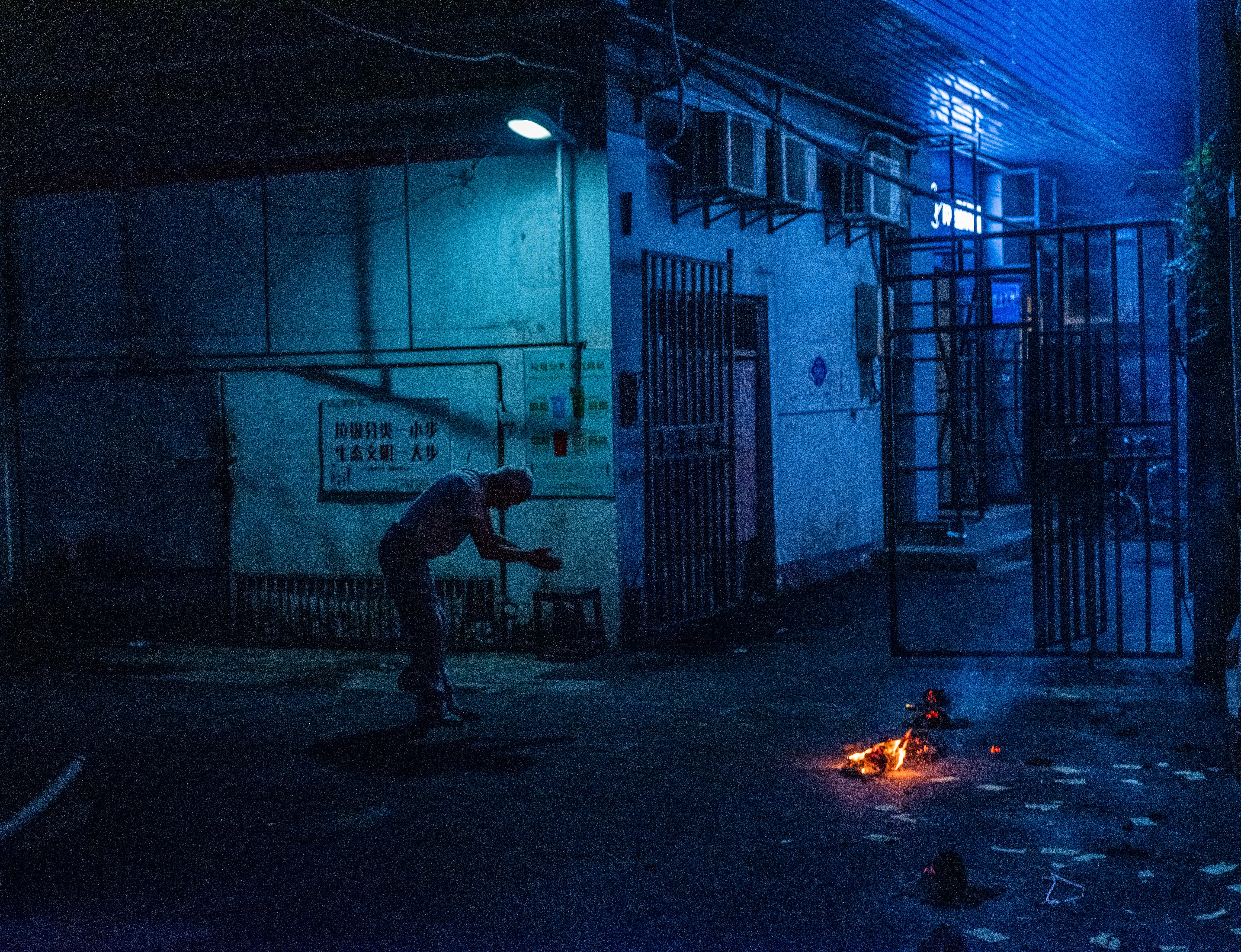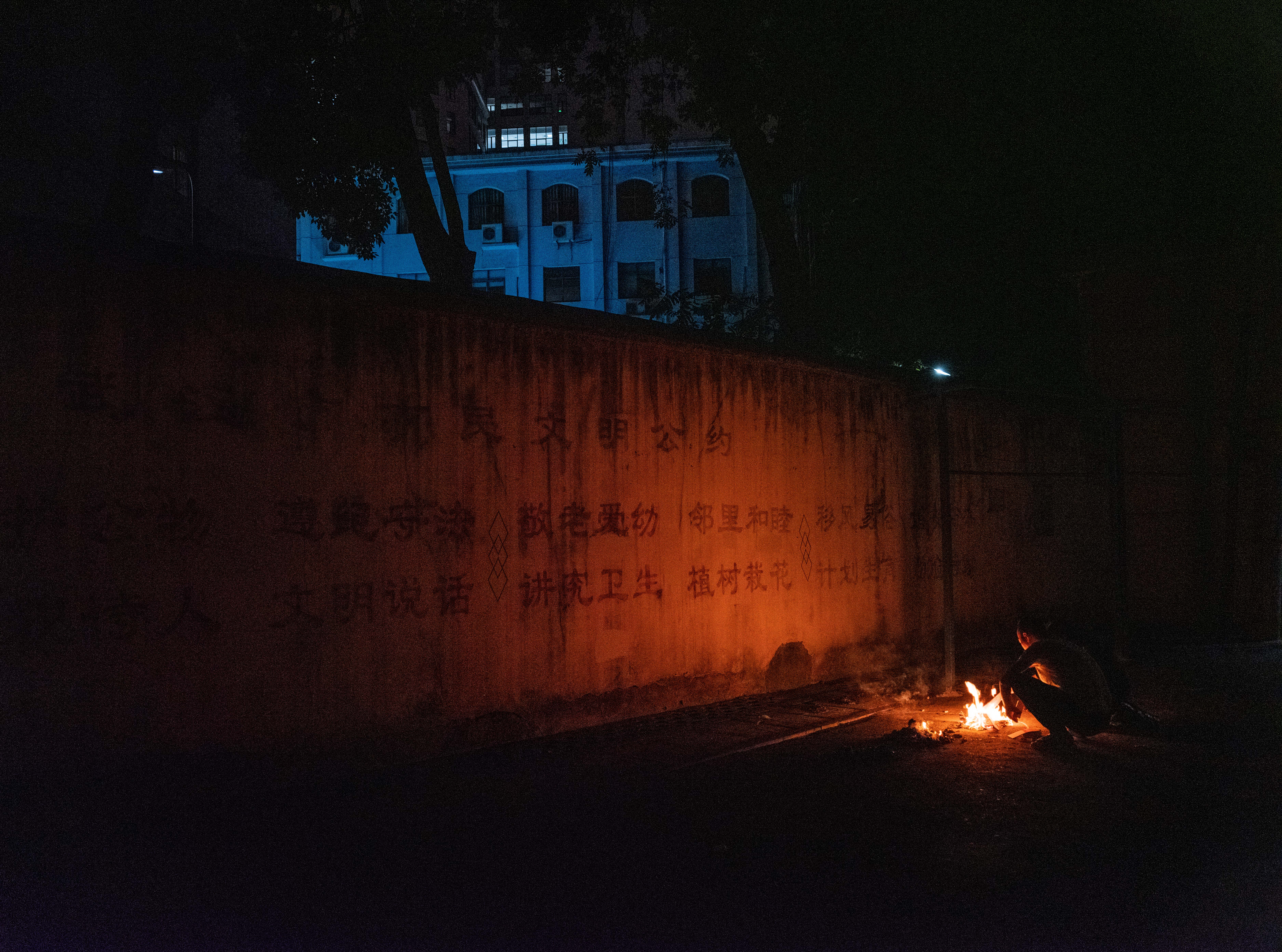尽管他们大多数拒绝在镜头前讲述关于死亡的故事,但是当他们立于欲被风吹散的纸钱堆前,或是一次俯身拨拢、或是三次拜首作揖、或是原地注目时,一场疫情之后所发生在城市空间里的古老仪式,就被纳入这个城市的集体记忆中,以沉默的方式呈现了他们的叙述。