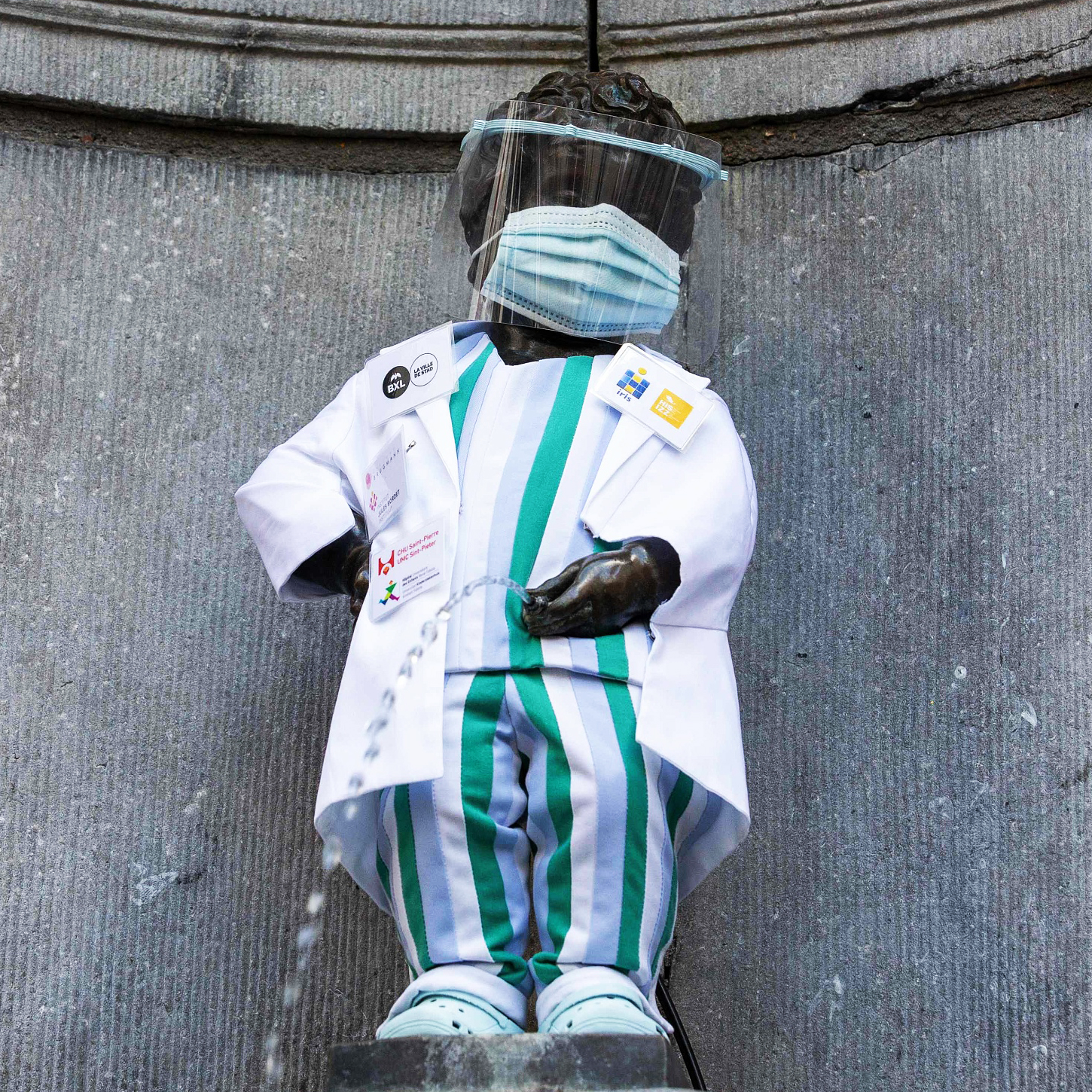 比利时布鲁塞尔 | “小尿童”全副武装致敬医护英雄
