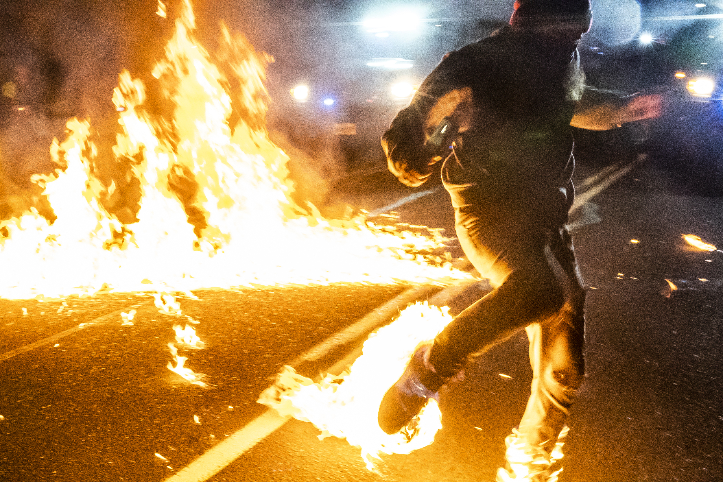9月5日,俄勒冈州波特兰市的抗议活动进入第100天 ,警察和示威者再次发生冲突。示威者向警察投掷燃烧弹时砸中一名男子,致其双腿着火。截至5日清晨,警方共逮捕27名抗议者。当天在现场报道波特兰抗议事件的哥伦比亚广播公司(CBS)记者指出,警察在驱散抗议者时行为较为粗暴。警方则表示,抗议者未遵守命令撤离并投掷物品。图片:人民视觉