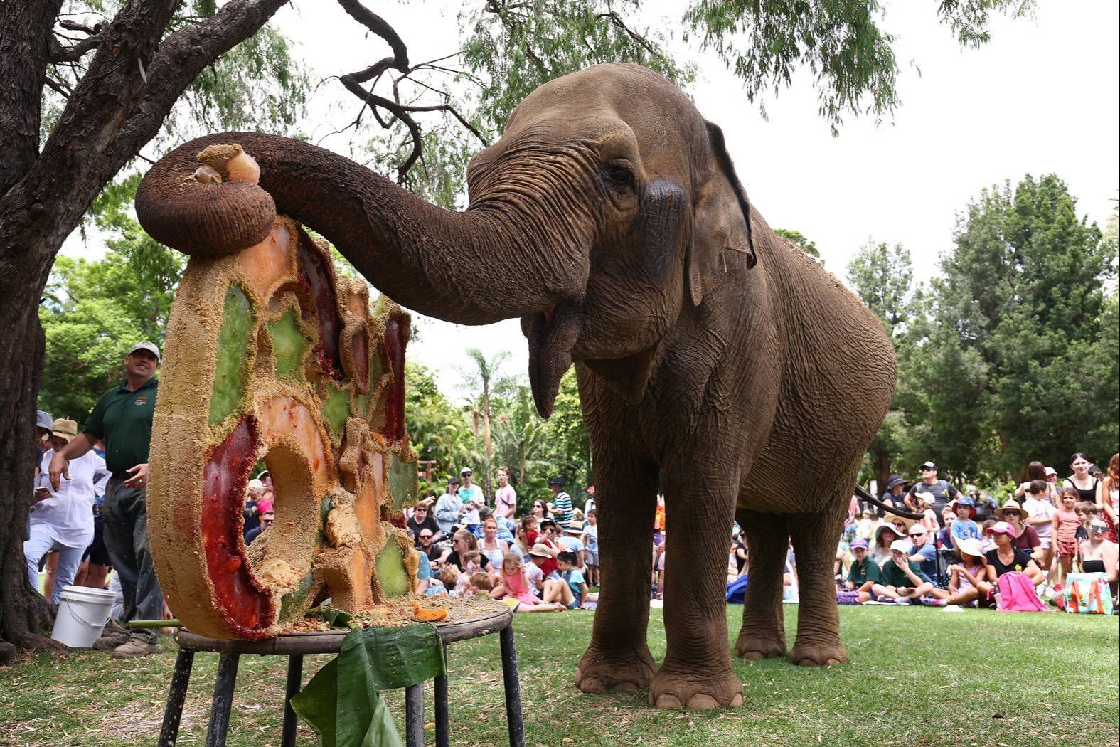 澳大利亚 | 珀斯动物园亚洲象迎来64岁生日,收获“专属定制”生日蛋糕