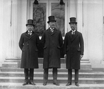 第二,英日同盟的存在。日本和英国在1902年就建立了“英日同盟”。日本在甲午战争中,战胜了清王朝,攫取大量赔款,还强迫清政府割让辽东半岛和台湾岛。但是俄德法三国觉得日本势力太大了,对自己侵略中国形成了阻碍,于是联手干涉,史称“三国干涉还辽”。日本不得不放弃辽东半岛。对日本来说,这是一次“国耻”,明明吃到嘴里的肉,被人逼着吐了出来。于是日本意识到,在亚太需要一个盟友来对抗其他列强,尤其是对抗垂涎中国东北的俄国。同时,英国作为第一强国,在中国也拥有极大的侵略利益,和俄国矛盾尖锐。于是两国一拍即合,组成了同盟。借助英日同盟,日本在亚太地区的势头很猛,陆续吞并了朝鲜半岛、深入控制中国东北、占领德属青岛、强迫袁世凯签订“二十一条”,可以说深刻改变了东亚的格局。日本独吞中国的势头越来越明显,导致了英日矛盾的增长,英日同盟有所动摇。于是,日英也需要协调。